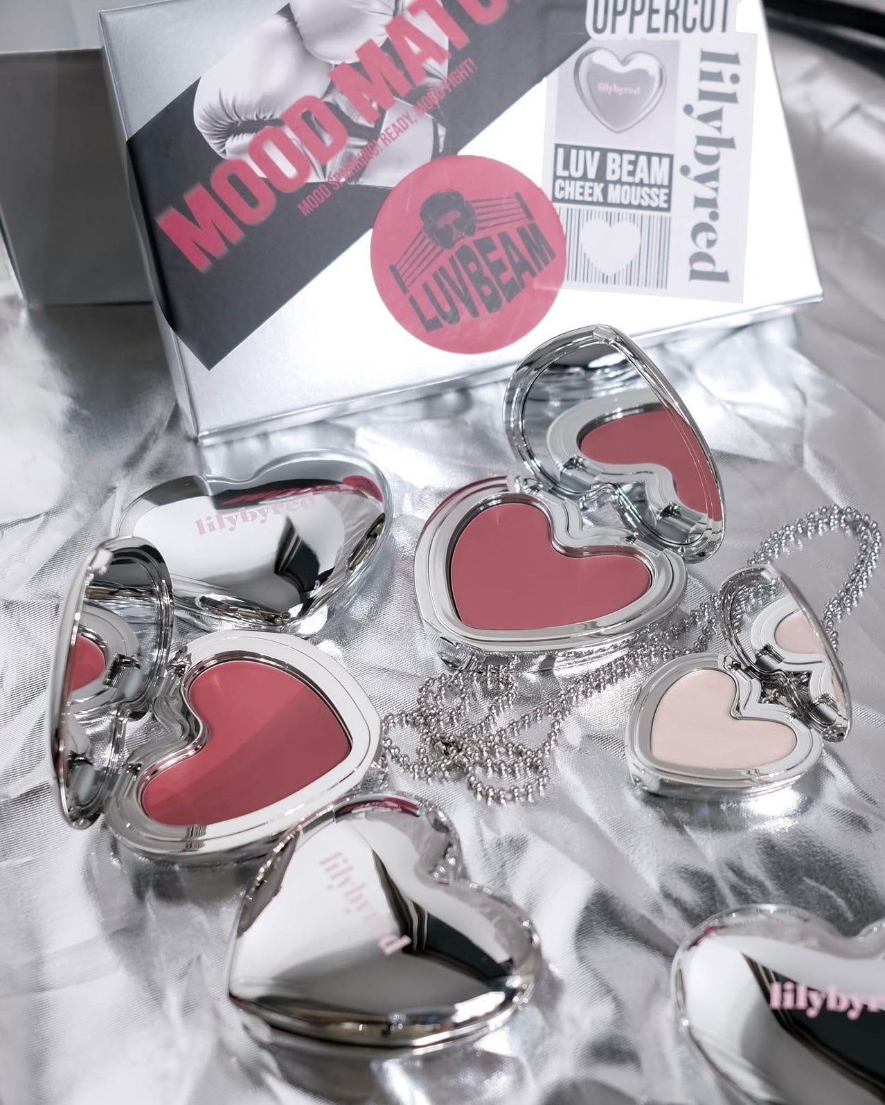 採用立體銀色心型設計、帶有金屬光澤