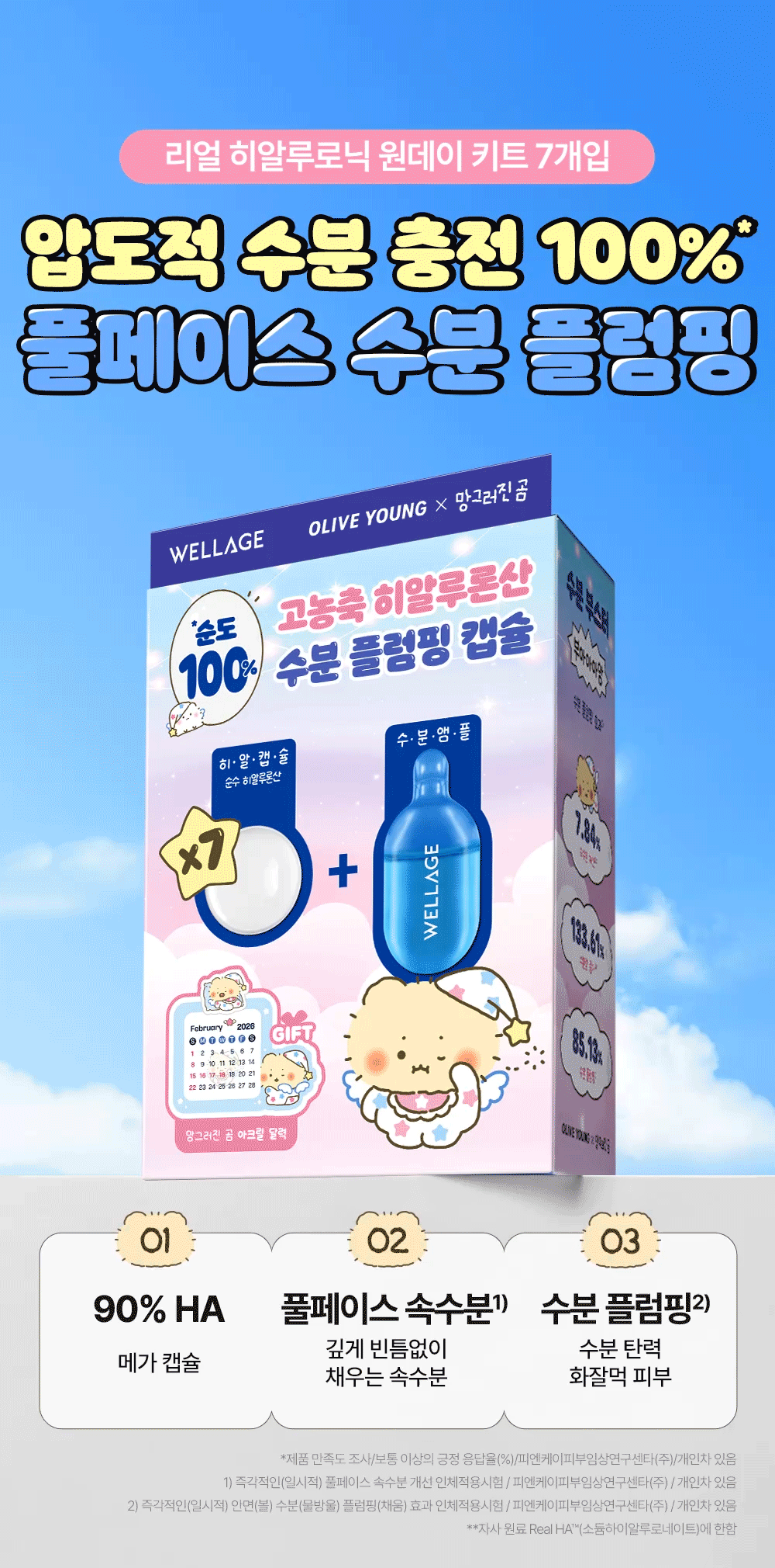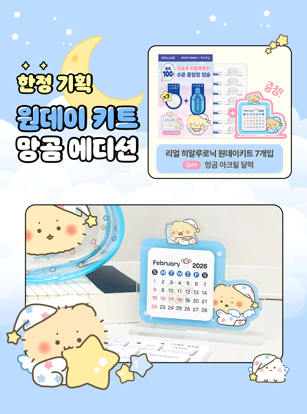 送土豆熊亞克力日曆✨Wellage x 土豆熊限量版急救玻尿酸乾凍濃縮精華💙💊 | Wellage Real HA Hydrate One Day Kit Set 💧